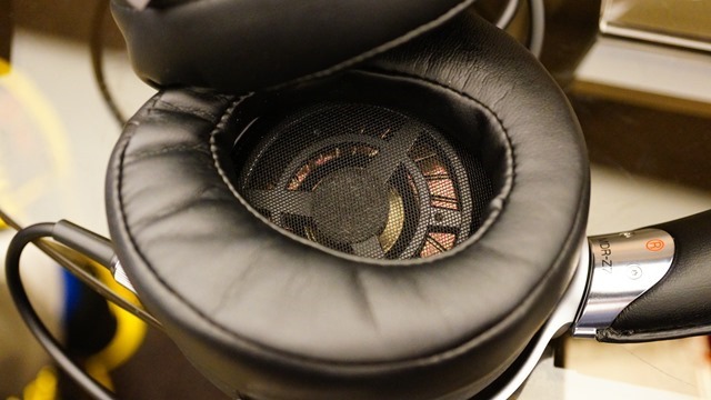 以這個角看耳罩內部,除了能到採用真皮設計耳墊內側外,還有這個70mm大尺寸的鋁製塗層液晶高分子振膜驅動單體。