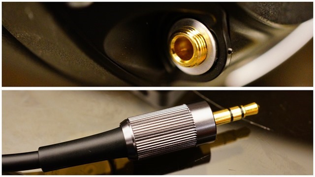 連接線材與耳罩端子插孔都有螺紋設計,當連接線的端子插入耳罩的插孔後,再將端子鎖緊後,就能避免聆聽過程中,因移動不小心造成耳機線材被大力拉扯時,可能損壞耳機的狀況。另外,這樣也能確保連結的密合度,讓訊號傳輸的損耗情況更低!