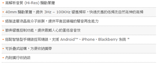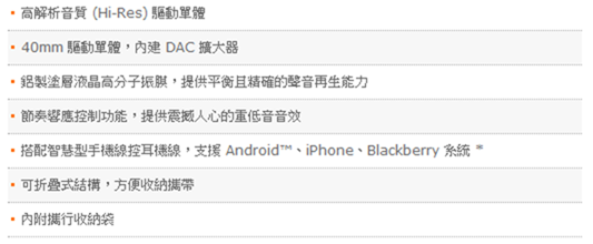 先看一下官網對這隻MDR-1ADAC的重點規格列表。