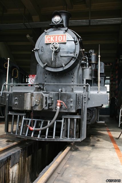 三百六十度旋轉的轉盤「旋轉台」以沿著轉盤中心向外輻射線狀的軌道,提供火車頭分別進入車庫內維修與停放,中心的旋轉台看起來要移動它非常吃力,其實它的設計是把重心放在中間,上面沒有火車時,不另外加動力,一個人就可以轉動它,如果加上火車的話,二個人就可以推動火車,真的不得不佩服它的設計。