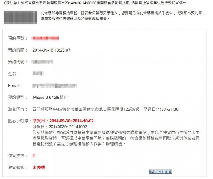 中華電信 iPhone6 64G 銀色 預約單預購單,9/30~10/02可領機