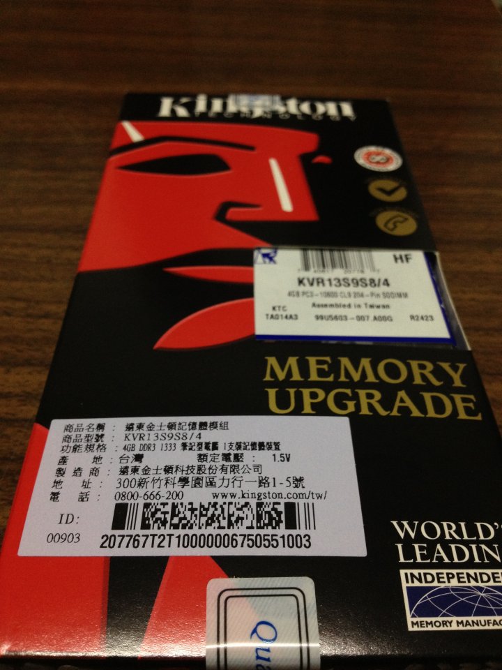 金士頓DDR3-1333 4G記憶體 筆電用 含運