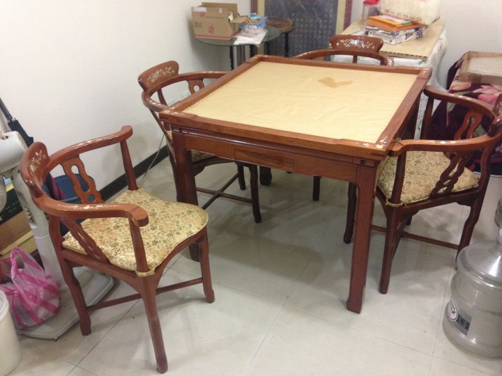 此為高級花梨木麻將桌保存良好.座椅有手工訂製座墊.精雕細琢.品味高雅.歷久彌新.連絡電話0938859288胡先生