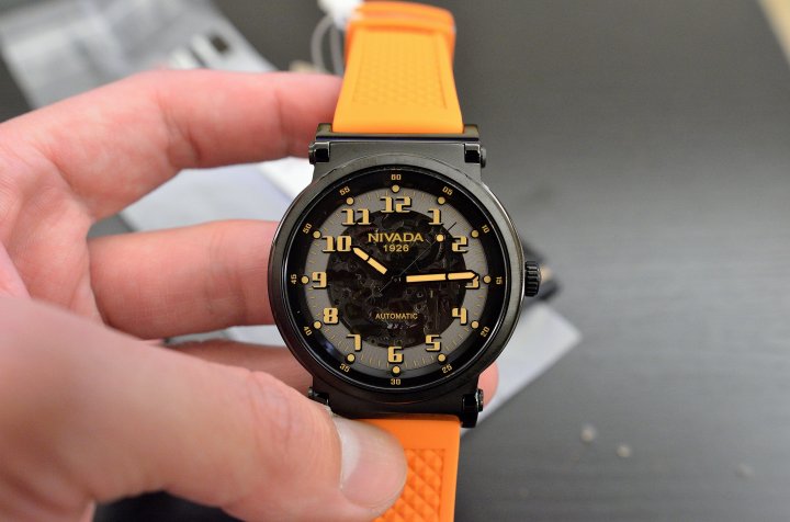 NIVADA全自動上鍊前後裸空機械腕錶,藍寶石鏡面附贈真皮錶帶