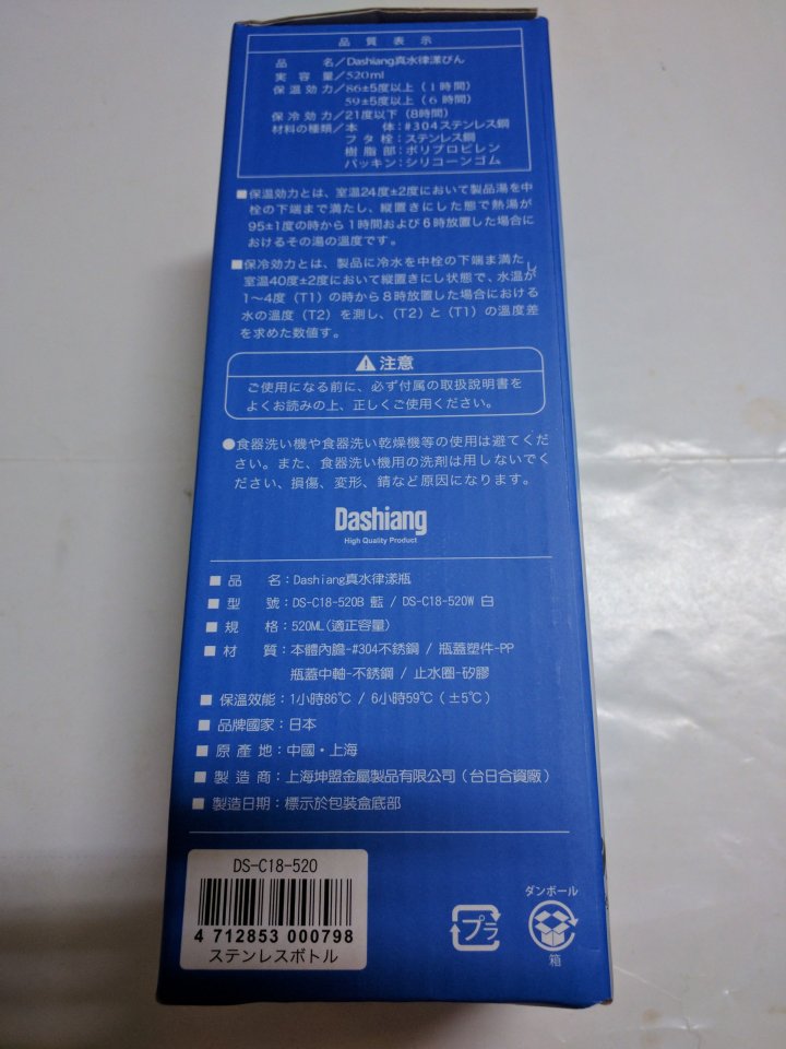 日本大相Dashiang保溫瓶--304不銹鋼雙層保溫設計 商品價格含運(限台灣本島) 彈蓋設計輕鬆一指就可打開瓶蓋,內膽材質使用304不銹鋼雙層保溫設計,保溫效果極好,冷飲熱飲皆可使用,輕巧好攜帶出門遊玩,小朋友上學使用非常方便