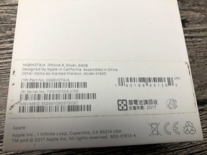 Apple iphone 8 (i8) 銀 64G MQ6H2TA/A a1905
