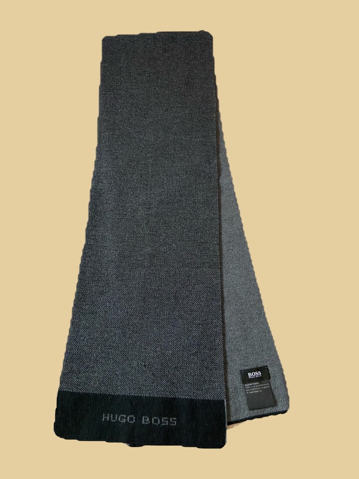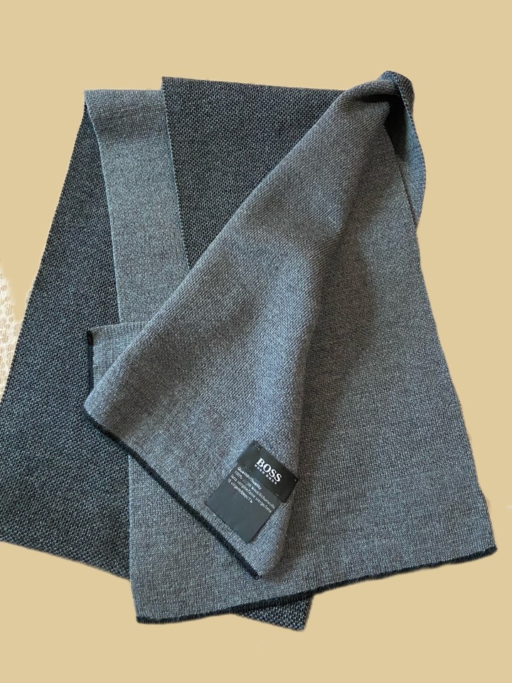 二手精品出清 德國精品HUGO BOSS 羊毛圍巾深灰色