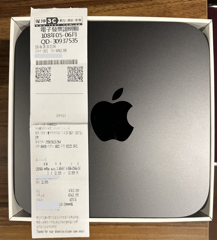 Mac mini 2019年購買6 核心3.0GHz 6 核心 Intel Core i5 256G ssd 32GRam(另外自費6000元升級), 全機如新,無刮傷,換機出售.附上當時購機發票.只接受面交驗機,[不議價,請勿來訊議價].