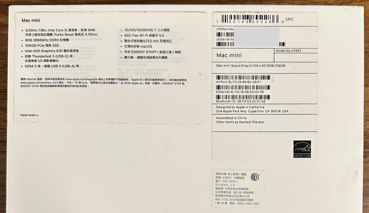 Mac mini (2019購買) 6 核3.0. i5 256G 32G Ram(特規)換機出售 全機如新