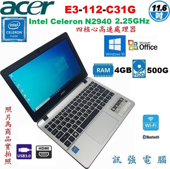 外觀很新的 宏碁 Acer E3-112-C31G ( ZHK ) 四核心 11.6 吋 文書、上網、追劇、直播多功能筆電