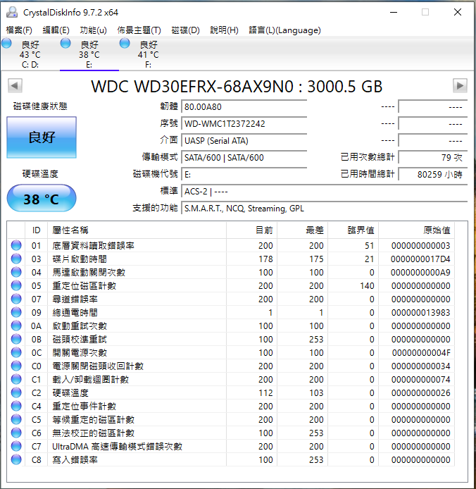 便宜二手良品 3.5吋 WD紅標3TB WD30EFRX 紅標NAS碟