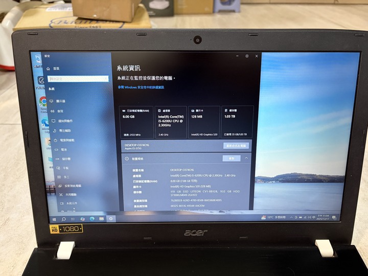 顯示器: 15.6吋 高清螢幕 些許亮痕
