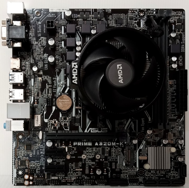 AM4腳位 實體拍攝 ASUS PRIME A320M-K + Athlon 200GE 附擋板/原廠散熱器