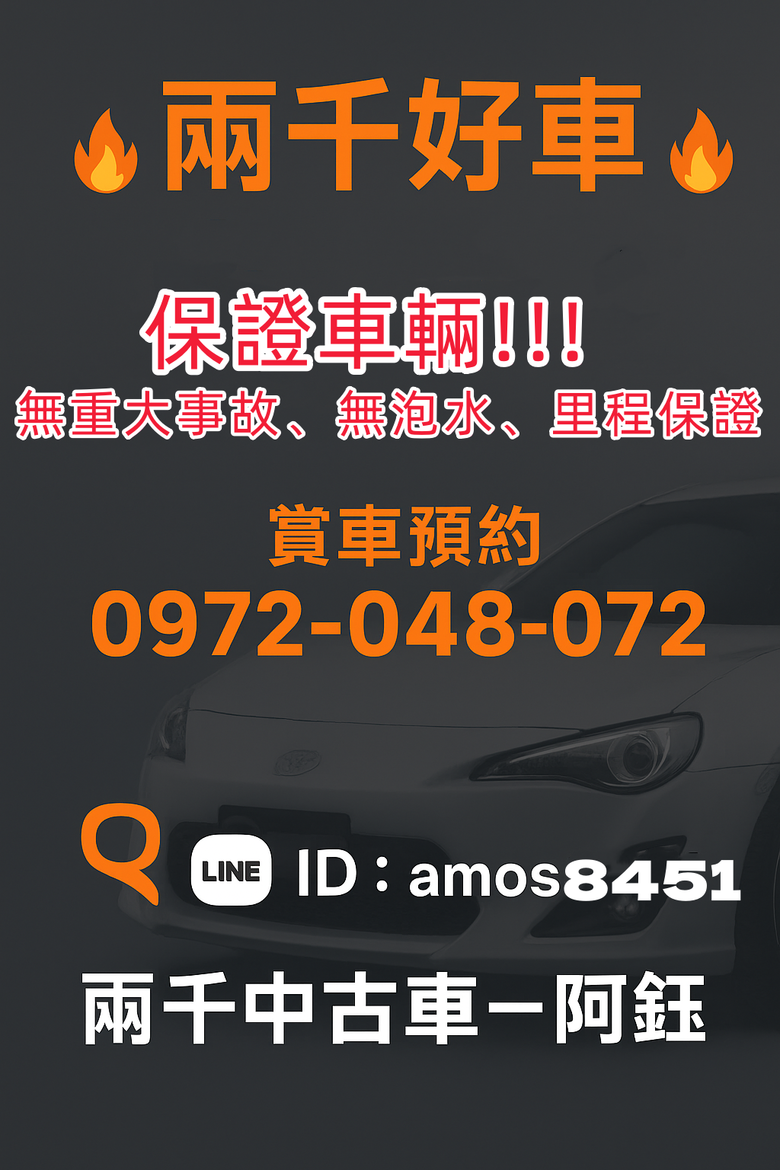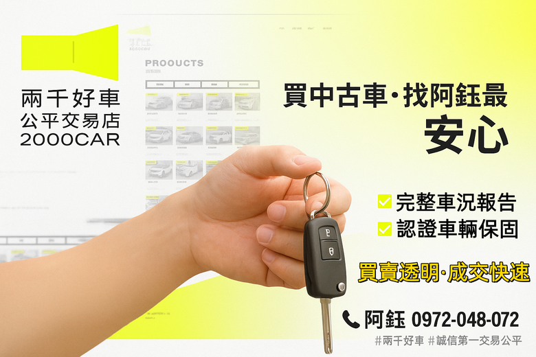 我們是兩千中古車,全新兩千好車公平交易店官網上架囉,歡迎搜尋 2000car.tw 就可以找到我們囉 來兩千好車,來牽好車。