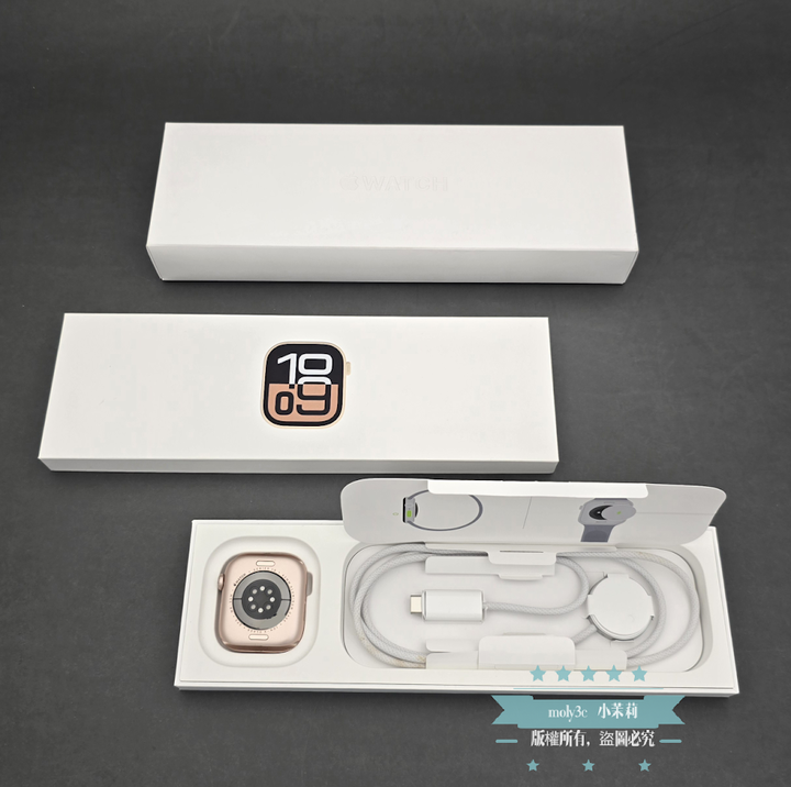 ■商品配件:盒子/Apple Watch S10 /磁性充電連接線/淡胭粉色運動型錶帶(S/M)。