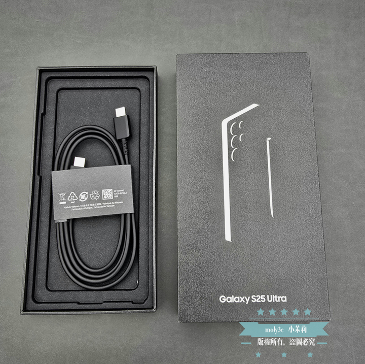 ■商品配件:盒子/S25 Ultra 5G/充電傳輸線/SIM卡針/說明書。