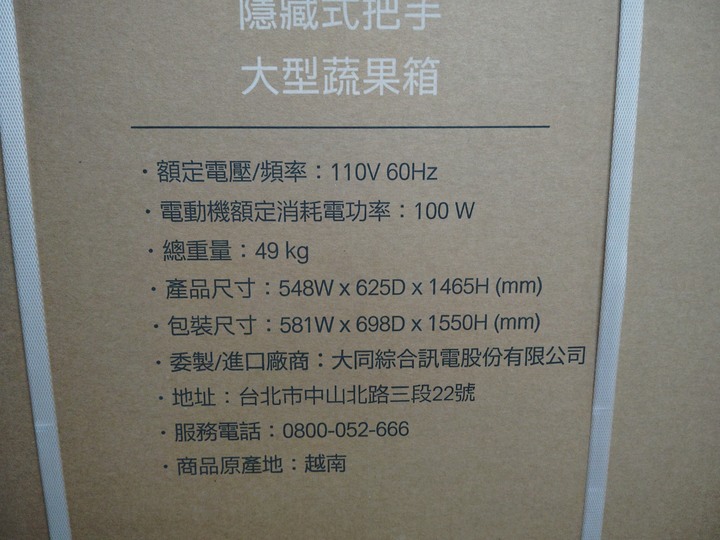 大同冰箱250L,型號TR-B1258vwh