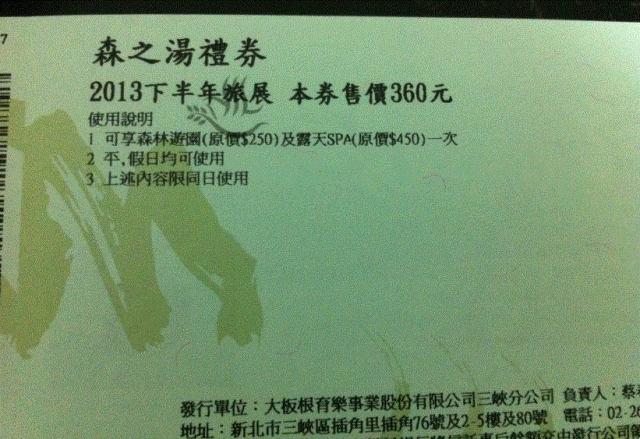 1。可享森林遊園(原價$250)及露天spa(原價$450)一次
