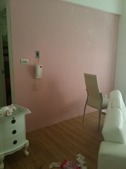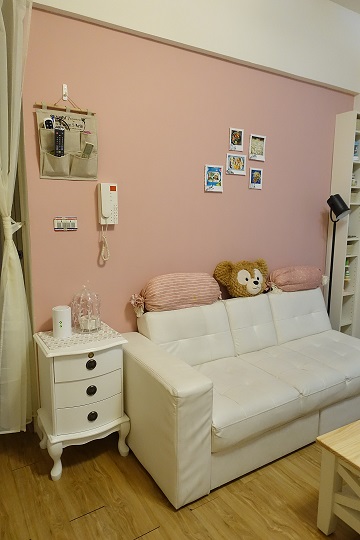 後來我就自己去挑選了乳膠漆,自己找了一個早上,把這邊全部塗上粉色系,