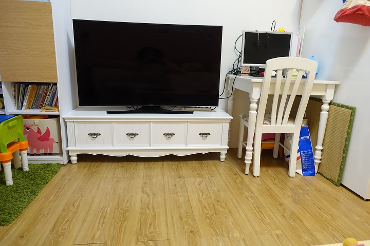 最後則是在網路上找了跟我旁邊收納櫃等蠻類似的鄉村風款式電視櫃,