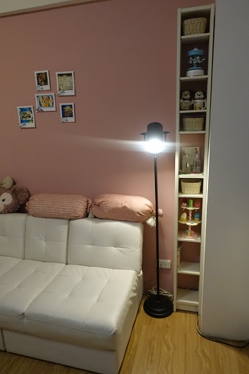 原本沙發旁邊多出來的空間就放上IKEA的CD櫃長架與燈座,