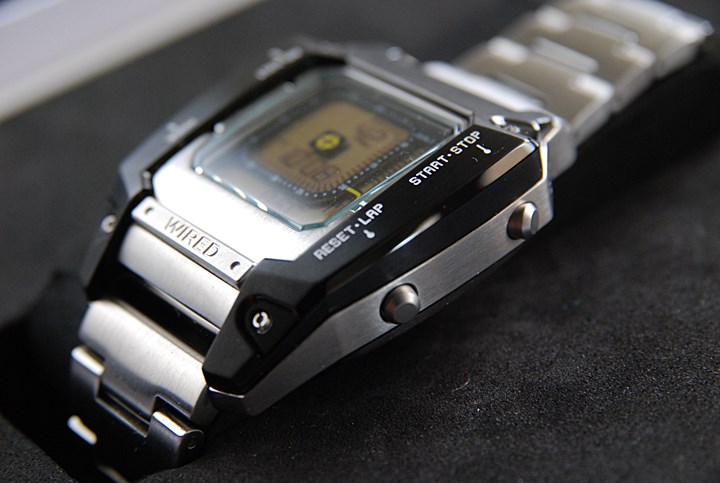 除了錶身兩側共四顆按鍵執行與調整功能外,錶面螢幕下方的WIRED字樣更直接彰顯此錶的身世來源。
