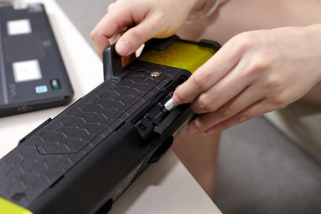 在取出電池時,湘晴又想到:「不只是練舞,以後若去海邊或者郊外烤肉,也可以帶著STEEZ隨行嘛,因為還蠻方便的呢!!」