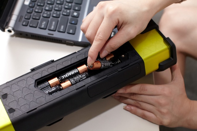 要接上線時,湘晴這才發現,整個下午STEEZ音響全都是靠裡頭的六顆3號電池在驅動的。