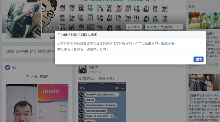 有沒有人知道臉書為什麼不能封鎖鄧佳華