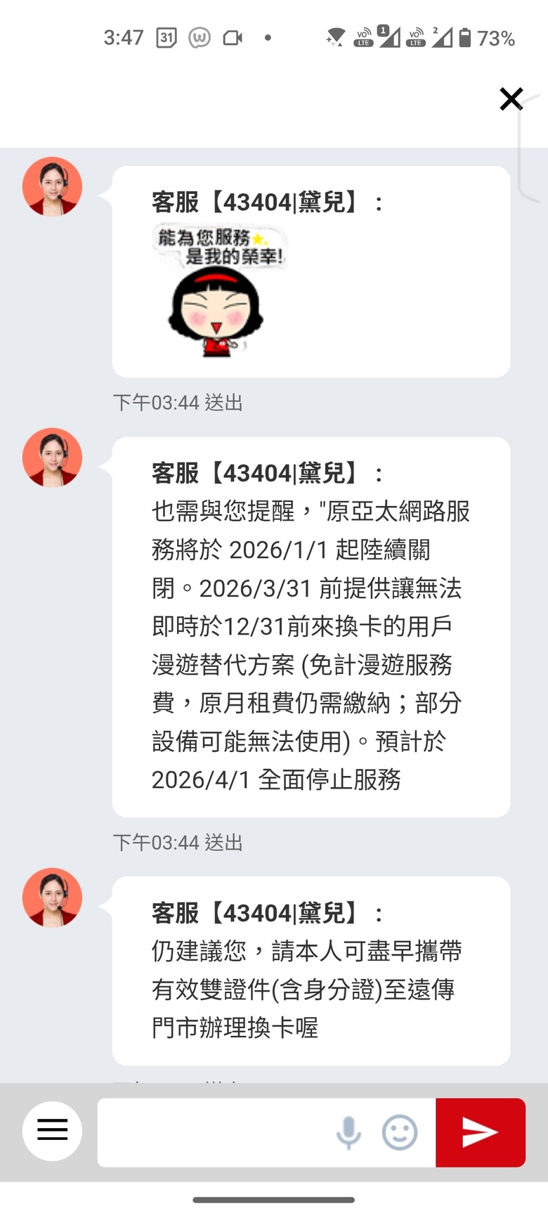 01不是常說門市不可信?門市人員有時同一件東西會有不一樣處理方式我通常會跑直營,加盟落差會大一些, 我自己是不相信ncc會直接規定換個sim卡要叫你警局辦遺失啦,反正新聞就看一看各自解讀囉就跟亞太要換卡不換卡一...