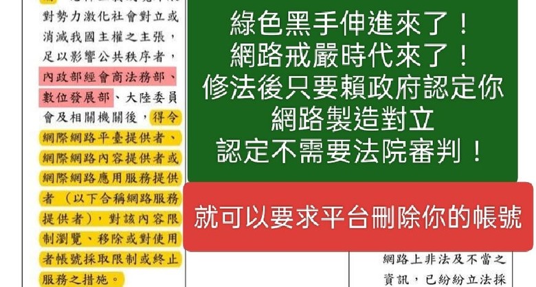 這根本是數位中介法還魂行政機關認定是否違法,依目前行政機關的組成,非親綠言論若被冠上「仇恨性言論」鐵定被盯上2023年Dcard拒供個資事件,若此草案立院通過,網路服務提供者若不服可能會被罰到爽,甚至關站行政院...