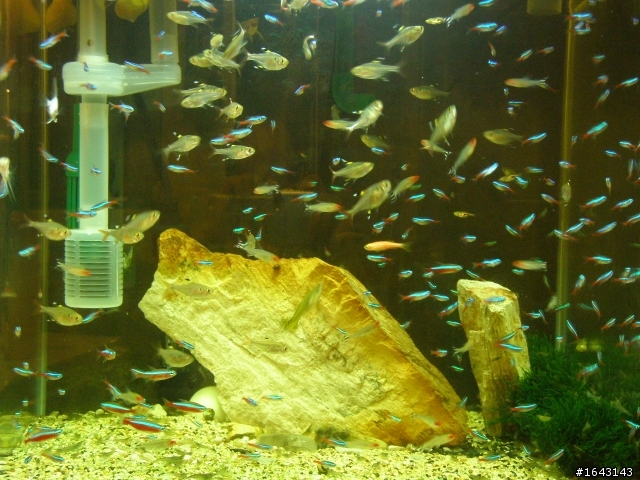 第二張照片那隻橘紅尾巴有黑色記號的\魚是不是玫瑰鯽魚阿= =那會吃水草唷,當然也會吃蝦子希望我沒看錯水草缸有很多魚都是禁忌,這要稍微注意一下