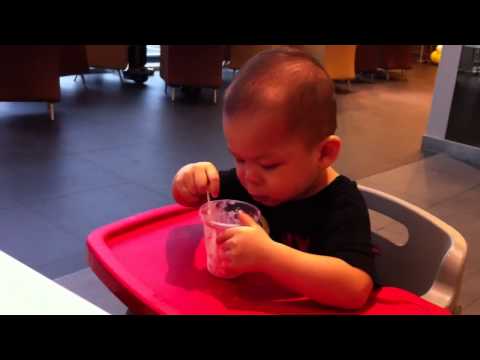 太太怕孩子多吃,所以給他做了一個凍凍的表情,之後.....每次吃雪糕,他就......XD不知道你們的孩子有哪些趣怪表情呢?