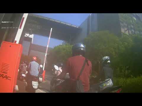 影片中白色安全帽綠色外套的女騎士在右側,她為了方便從右側切過來急煞停左邊的車位.還好沒有撞上,不然一定被後面的追撞