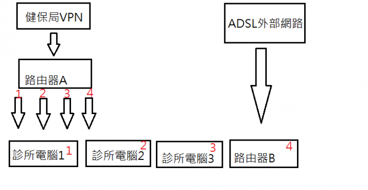 以前是A:192.168.x. 1跟B:192.168.x. 254A設實體VPN,B設一般外網B裡面設靜態路由10.0.0.0,255.0.0.0,192.168.x.1就萬事OK了