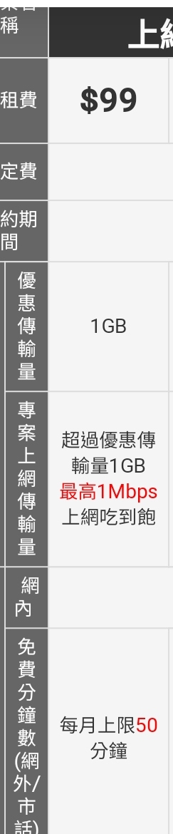 - 請教台灣之星0月租 流量低於1G費用