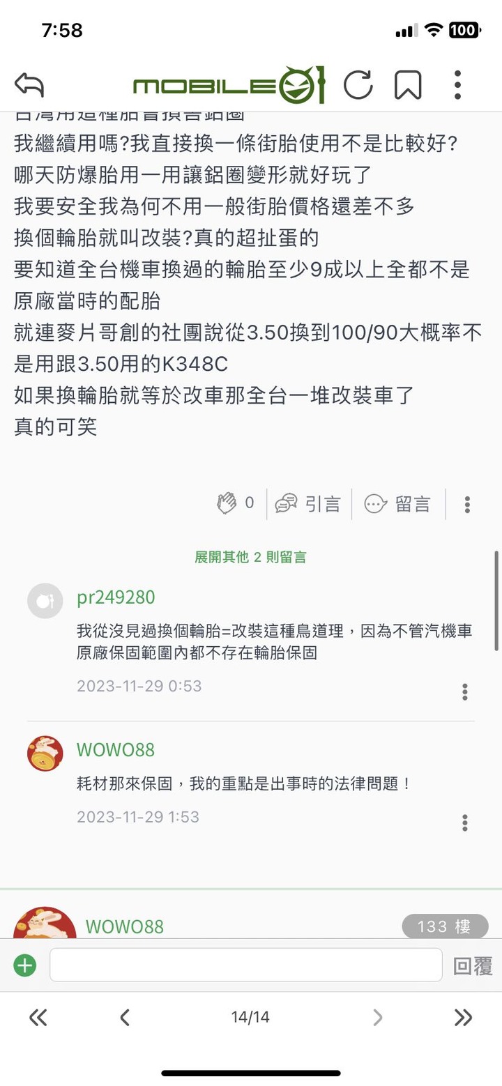 難不成換了輪胎之後在路上被車撞也要自己背責任?又或者是極端點,原廠出廠配胎騎了4萬不換出事責任也在原廠身上?