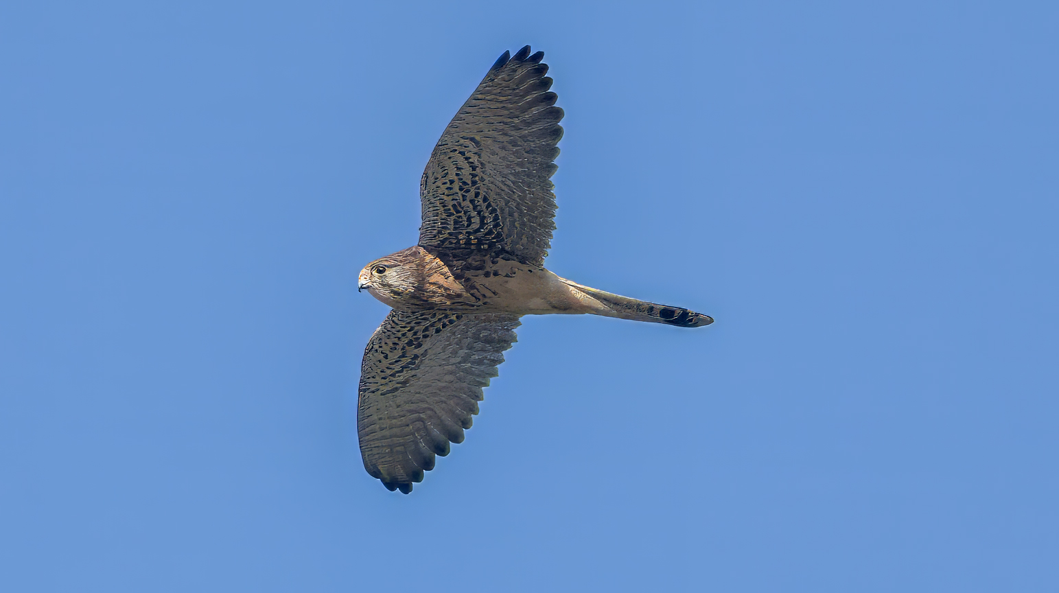 今天天氣晴朗,運氣特別好。一隻紅隼從頭頂約20公尺處掠過,我立刻舉起Sony A1按下快門,清晰捕捉這瞬間的震撼。A1的追焦與對焦能力極強,即使目標高速移動,也能迅速鎖定,成功率遠超我以往使用的A74與A7R5...