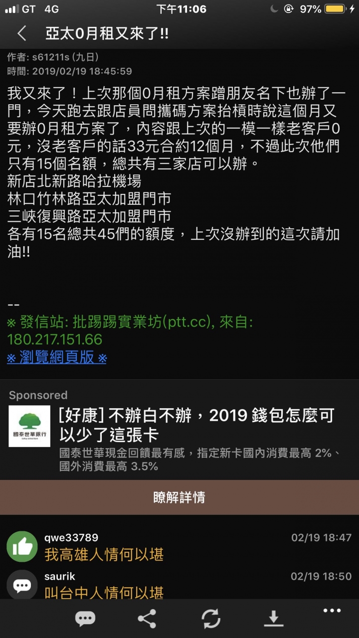 爬文其實沒什麼用啦~~畢竟都是快閃活動而且明明店家就缺業績才會多給退傭又要人低調取那什麼鬼店名暱稱有些人問的比較有技巧剛好店家也還缺業績,才願意退傭最多3600給你不管是399*12搭配一起省次次月月扣100或...
