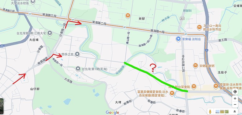 話說淡江大橋完工 那個新市一路打通也是很重要 能讓交通網更完整還有沙崙路建議也建議要先拓寬要不然到時候通車以現在的車道設計會塞爆然後到時候再來邊塞車邊施工死更慘