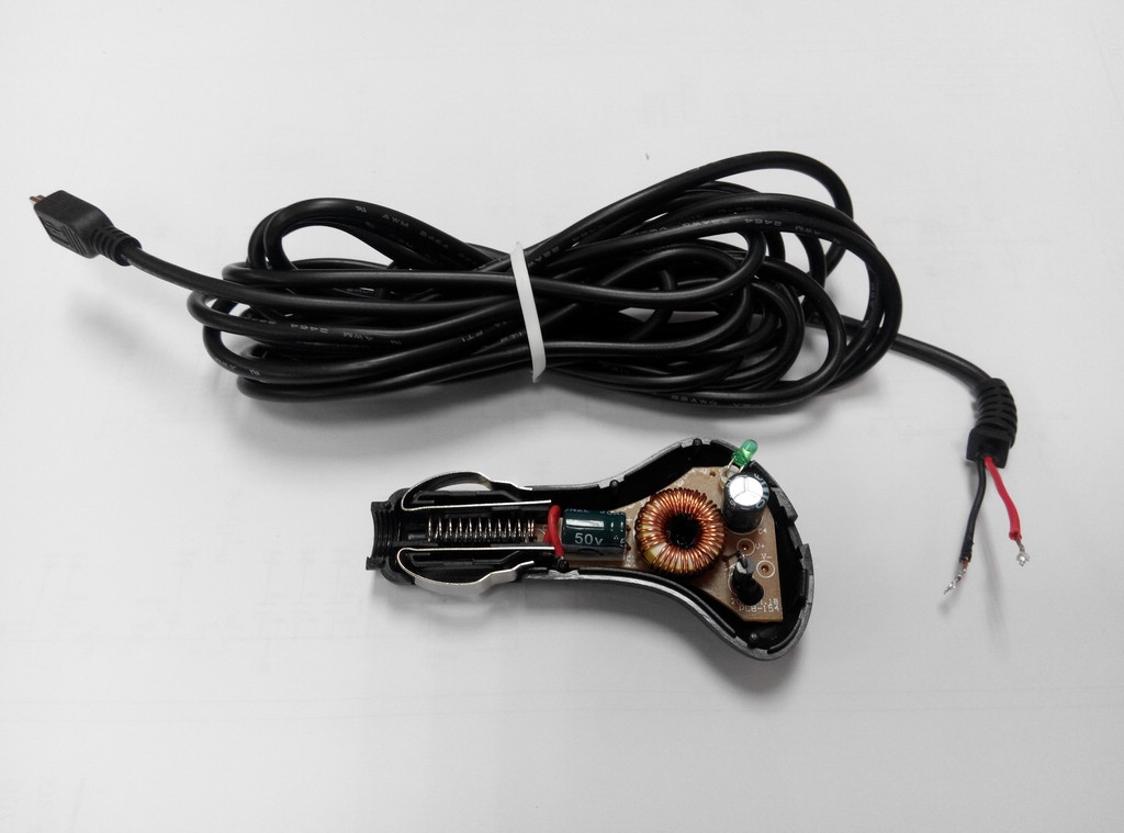車充線的更換方式如下:拆開車充器,將車充線解焊下來,豪邁一點的話就直接剪斷並脫去黑色外皮,露出紅黑線找一條用不到並有安規認證的USB CABLE,同樣剪斷脫去黑色外皮,使用其中的紅黑兩線將兩條線的紅、黑兩線相接...