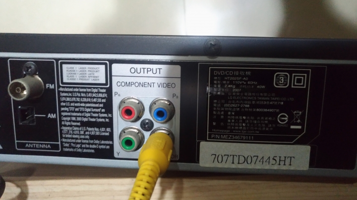 請問前輩們 最近朋友送我一組 LG DVD接收機 型號如圖((我想電視與DVD接收機 輸出聲 至一個喇叭 有辦法接???))目前只有放DVD才會從音響出聲,我的電視有支援耳機孔