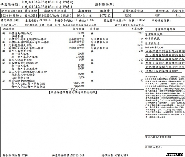 不久前拿現金到營業所繳第二年車險保丙式全險 業代算一算繳清後也沒特別注意今天發現收據上款項有被塗改的痕跡應該是多了整整一萬元打給業代說他說有另外投保"丟車賠車險" 還有第二張保單想請問各位前...