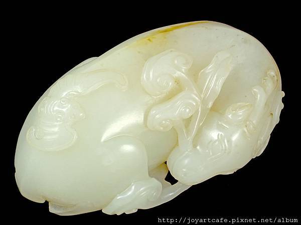 明代白玉鏤雕螭紋銜芝嵌件,。長:60mm,高:58mm,厚度:7mm,重量:41g。 螭龍,亦稱之為草龍,民間認為其能大能小,極為善變,能驅邪避災,寓意吉祥如意,連綿長在,也象徵男女之間的情意綿綿。 靈芝...