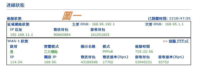 小弟家裡的網路是由一家網路公司拉中華電信光纖分享給各戶該網路公司拉到社區時,有一台叫vigor 2110 broadband firewall 路由器系統狀態如圖一該台機器再拉到社區各戶,我家因為設備多,有線...