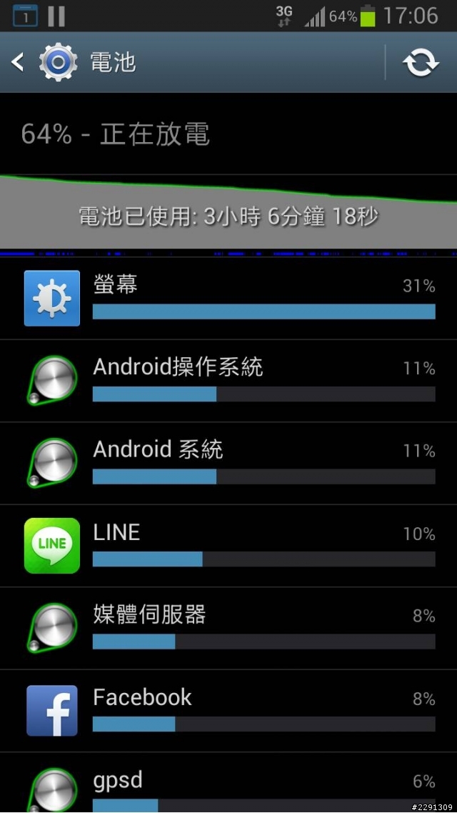 S3於去年6月購買,有早鳥禮多一顆電池一直以來大都直接充電,,只有幾次交換電池用因為最近耗電比較快,想說是不是電池用久了就換用較少用的那一顆電池,但感覺情況也沒改善多少手機大都拿來聽音樂,上臉書跟line螢幕亮...