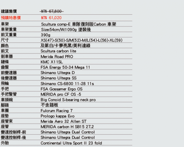 美利達Scultura 905 2014 價格45800 -9折+0.5折配件(41220送2290配件)規格捷安特 TCR COMPOSITE 2 2014 價格42800-95折或1折配件(40660)規格...
