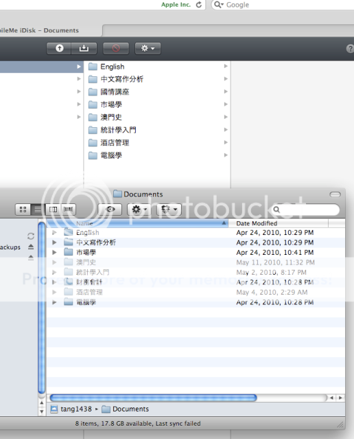 這兩天突然發現我在 MobileMe 上的 iDisk 無法和 MBP 上的 iDisk 同步了,可是 Contacts,Calendar 似乎都正常,請問可能的原因?謝謝!