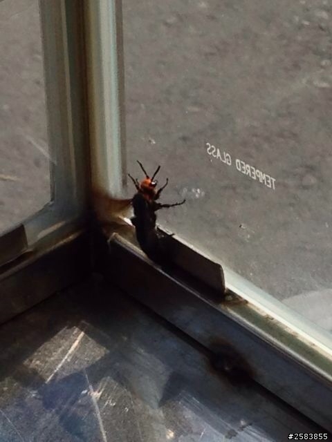 各為大家好!!小弟家最近出現這種蜜蜂!?其實我不確定他是否是蜜蜂....我只知道! 目前看到的數量是一隻!!然後築巢在我家的門上..不知道這是!!? 什麼蜂?有無攻擊性呢!?