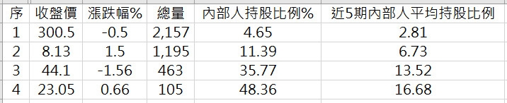 內部人持股比例暴增股,利用內部人持股比例大於近5期平均的1.5倍進行篩選:更多更詳細資料請點我:https://reurl.cc/dR4Ay可試閱!